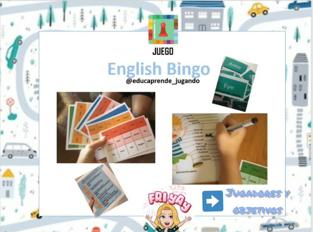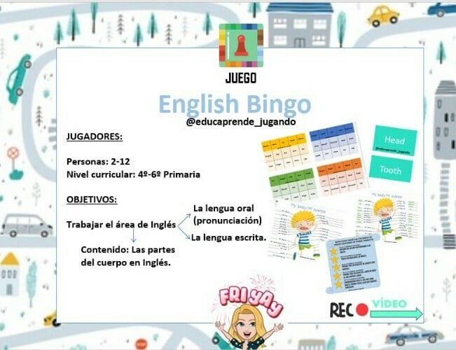 🎲Jugando a este "English bingo" aprendemos las partes del cuerpo en Inglés. Rcomiendo el juego para los últimos cursos de Primaria, ya que hay muchisimo vocabulario de las partes del cuerpo, no solo lo más básico. Además, he establecido una media de 2-12 jugadores👧🏽🧒🏼.